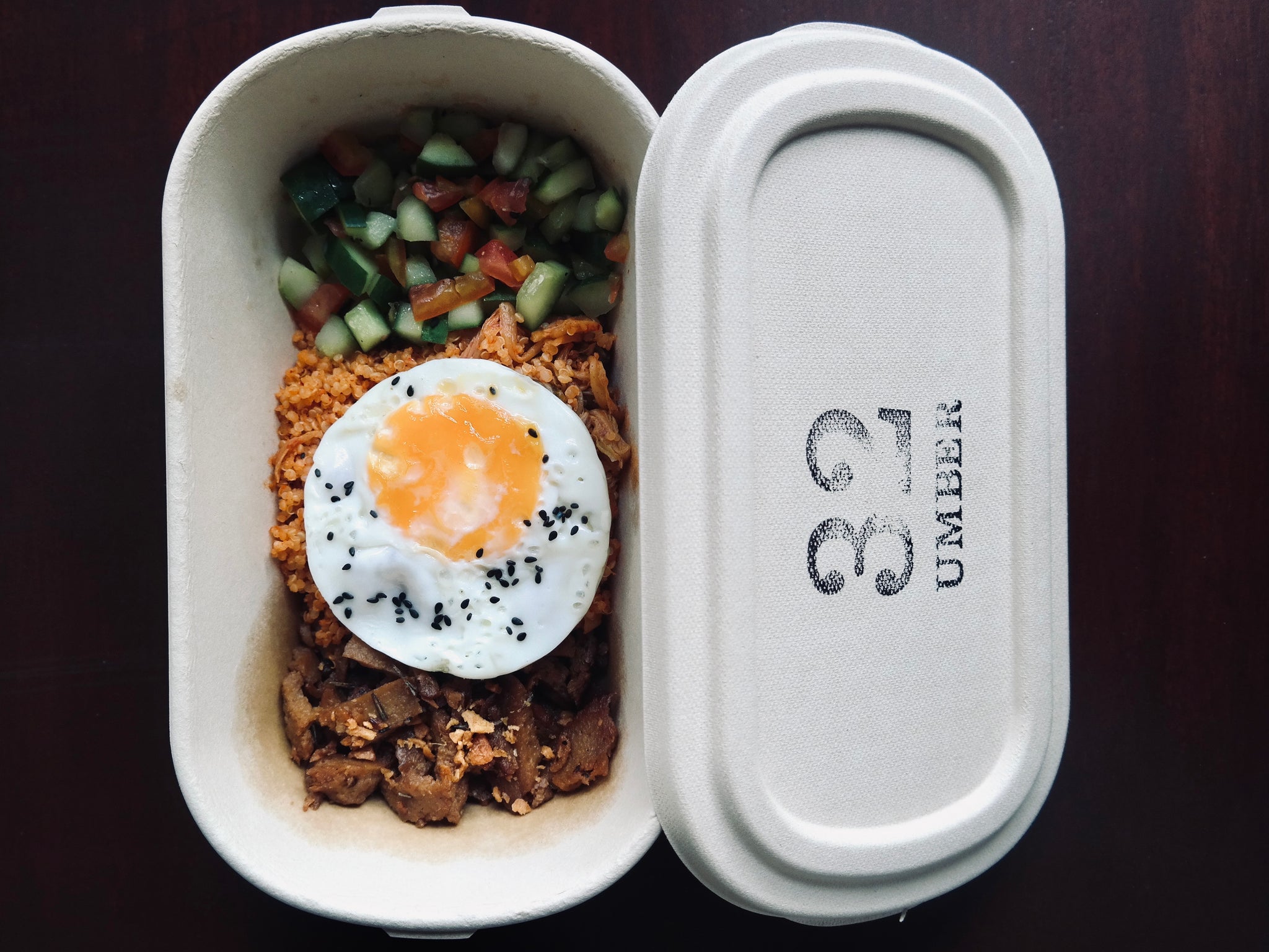 Vegan Tapa + Kimchi Fried Quinoa + Tomato & Cucumber salad